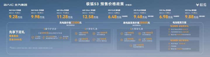 预售权力方面,极狐为用户定制了总价值22500元的限时礼包,包含4000元购置税补贴、价值5000元的电板全周期看管、2000元异常漆色、1500元S次元智选礼以及10000元用车保险权力。