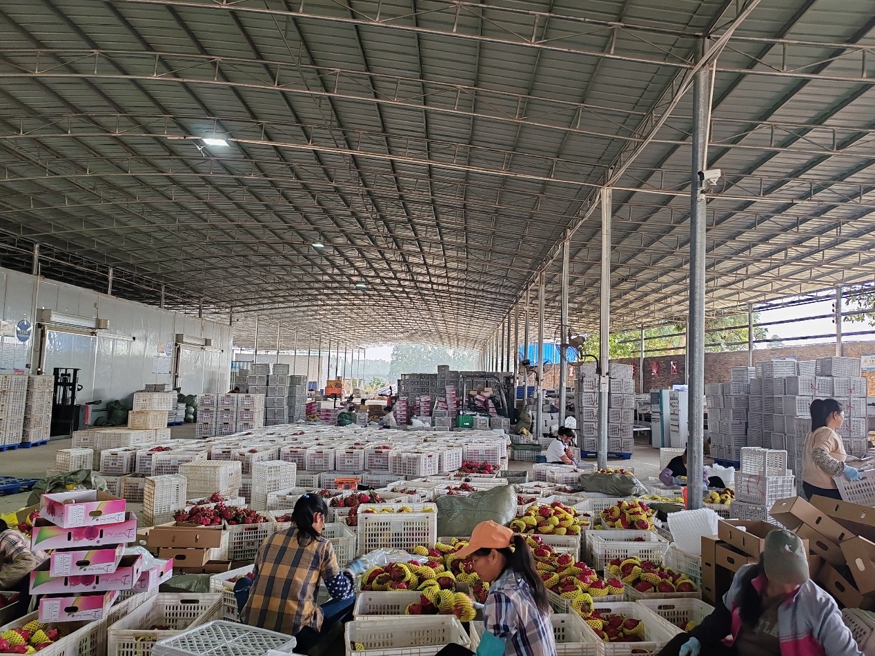 海英火龙果专科耕种互助社的火龙果挑拣车间。